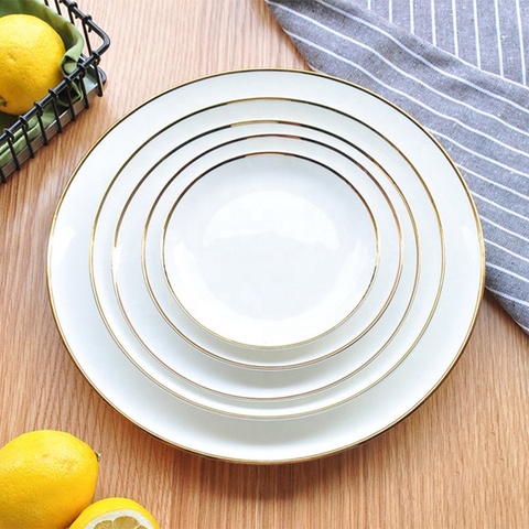 Anpassbares Logo Golden Edged Steak Plate Europäische hand gefertigte Keramik Dining Shallow Flat Disc